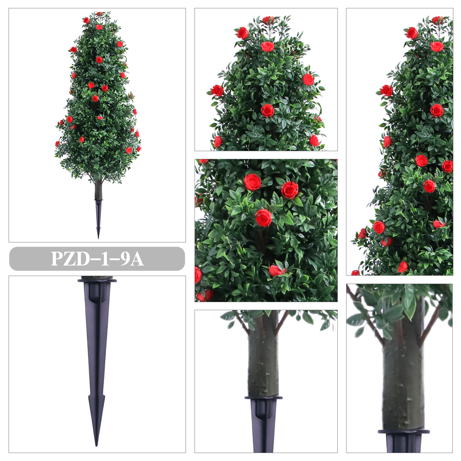 Made of imported eco-friendly PE raw materials and food-grade odorless additives, the product is integrally formed through multiple precision processes. The leaves have delicate and realistic veins and natural original textures, the main stems are tough and not easy to break, and the ground plug components adopt anti-slip and reinforced design, which can be quickly adapted to various media such as soil, sand and flower troughs. The overall simulation degree is as high as 98%, and the simulation accuracy of high-end models can reach 99%. The product has passed a number of rigorous certifications such as 20,000-hour UV resistance test and high and low temperature resistance test, with an outdoor service life of more than 5 years, without fading or deformation throughout the process. Meanwhile, it supports personalized customization with a minimum order of 5 pieces, allowing customization of color, size, LOGO and packaging as needed. Samples can be quickly provided within 3 days with free trial service, fully meeting the landscape decoration needs of different scenarios.