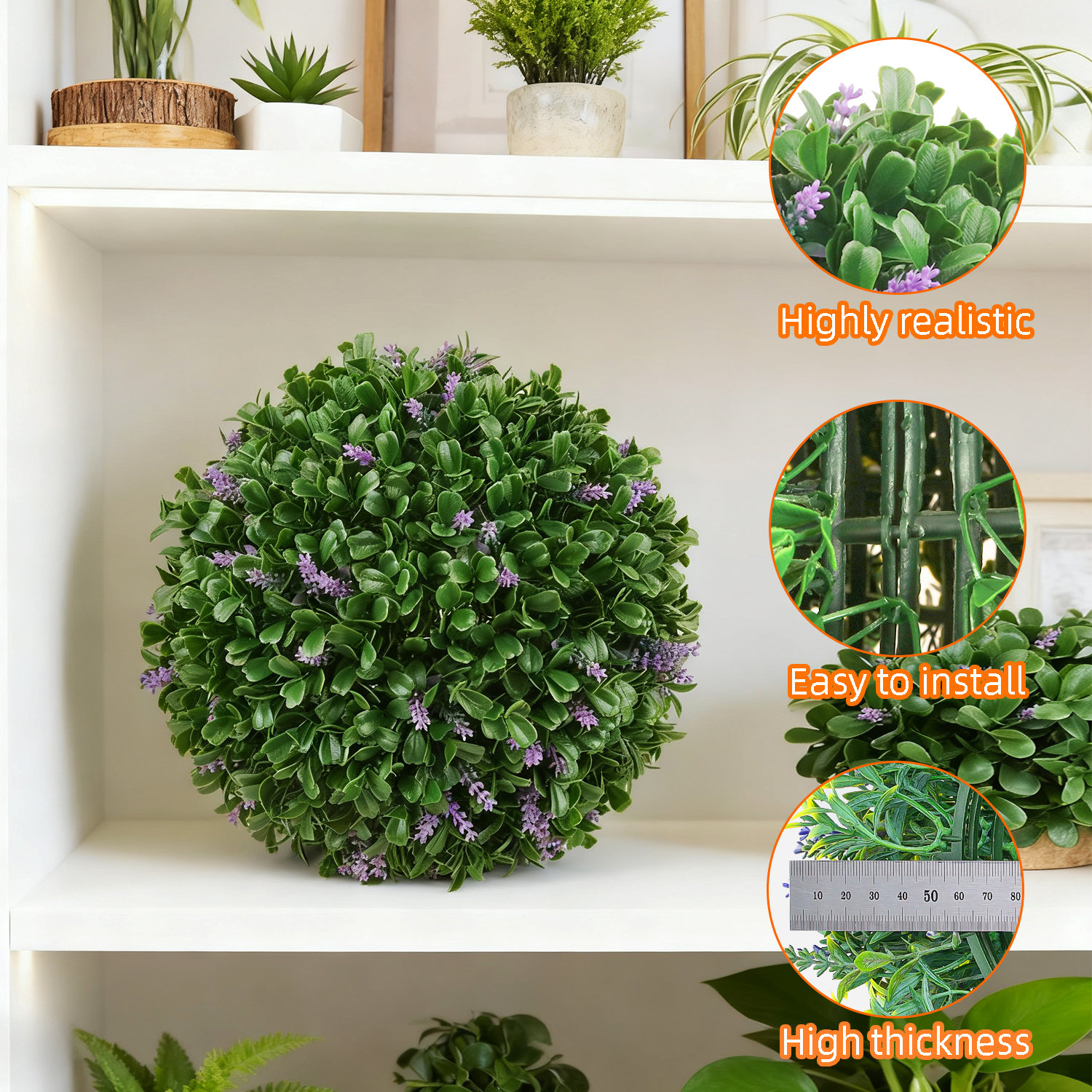 Made of high-quality eco-friendly plastic raw materials and refined through multiple processes in accordance with the fine standards of Zhejiang craftsmanship, the product has dense and uniform grass filaments, natural color and a round, full spherical shape, with an overall simulation degree of up to 98%. It offers a variety of outer diameter sizes ranging from 7.87 to 23.22 inches, and is delivered as hemispherical components that can be quickly assembled via buckles for convenient and stable installation. Having passed multiple authoritative certifications such as SGS and ISO9001, it has a service life of more than 5 years and features UV resistance, flame retardancy and odorlessness. Meanwhile, it supports personalized customization with a minimum order of 5 pieces, and samples can be quickly provided within 3 days with free trial service, meeting the decorative needs of various scenarios.