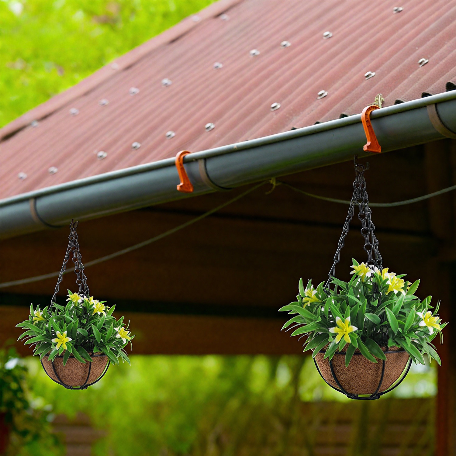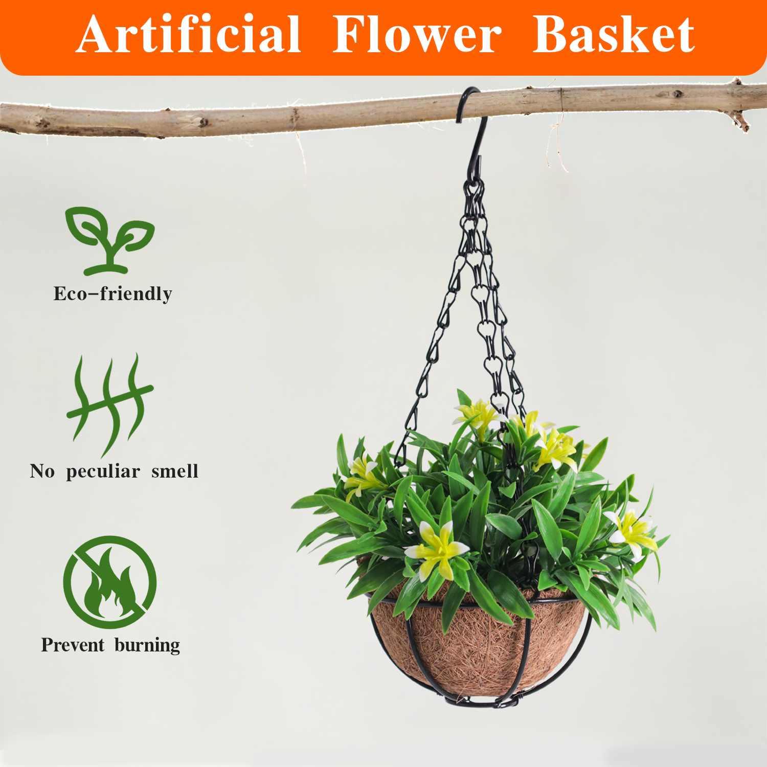 In home scenarios, the flower basket can be flexibly arranged according to the placement form. The wall-mounted model can decorate balcony walls and entrance corridors to add three-dimensional greenery to the space; the floor-standing model can be placed in courtyard corners and living room balconies to create a natural and leisure atmosphere; the desktop model can be placed on restaurant dining tables and bedroom bay windows to create a warm and healing home mood. It is suitable for various home decoration styles such as new Chinese style, pastoral style and modern minimalist style, especially suitable for families who like outdoor decoration but have no maintenance energy. In commercial scenarios, it is an ideal decoration for hotel courtyards, restaurant terraces, shopping mall outdoor exhibition areas and sales office landscape areas. It can not only soften the coldness of hard commercial spaces, shape a natural and friendly brand image, improve customer experience, but also reduce the maintenance cost of outdoor decoration due to its sun protection and durability. In special scenarios, it can be used for scenic cultural and creative stalls, homestay courtyards, wedding outdoor settings, festival square decorations, etc., which can be repeatedly disassembled and reused, balancing decorative aesthetics and practical value, and suitable for various indoor and outdoor non-cultivation decoration scenarios.