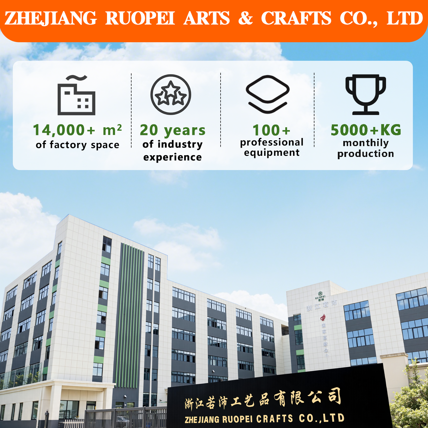 Zhejiang Ruopei Handicrafts Co., Ltd, is a plastic handicrafts manufactur erestablished in 2013, specializing in the production and sale of artificial green plants.The company integrates product development, design, production, warehousing,and sales.