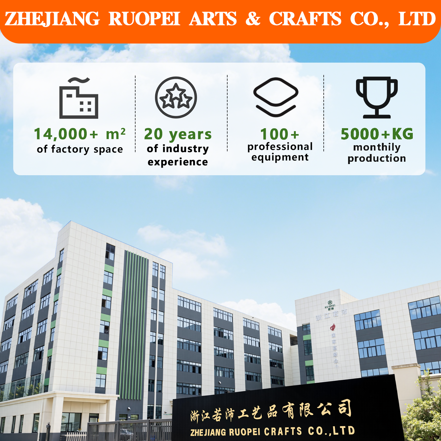 Zhejiang Ruopei Handicrafts Co., Ltd, is a plastic handicrafts manufactur erestablished in 2013, specializing in the production and sale of artificial green plants.The company integrates product development, design, production, warehousing,and sales.