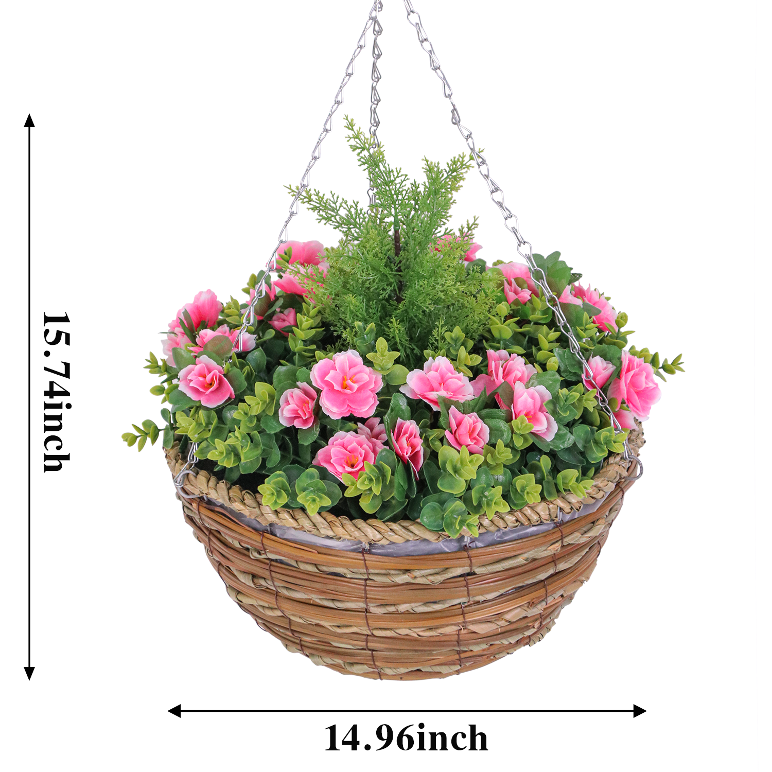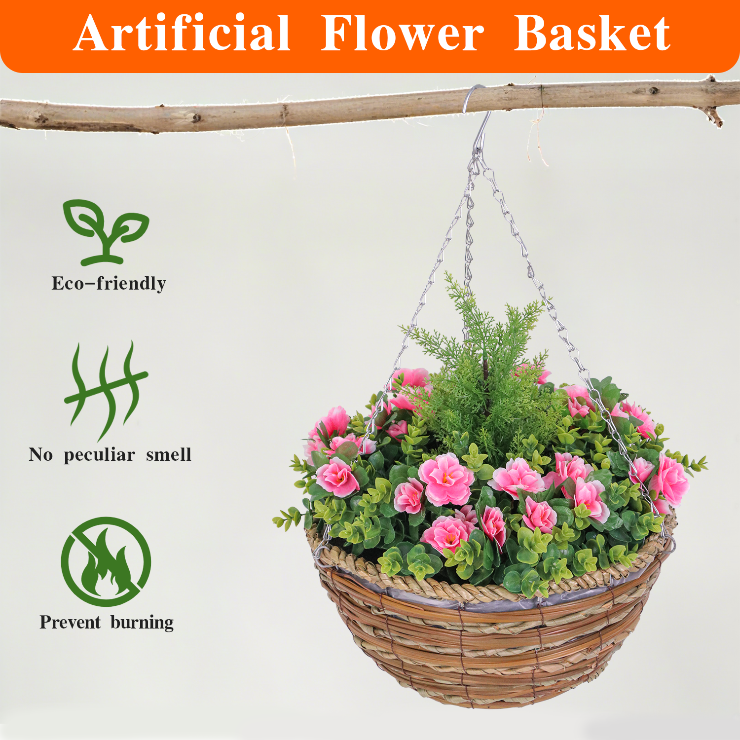 In commercial bulk decoration scenarios, it is an ideal choice for hotel apartments, chain catering, schools, hospitals and office parks: placing it in hotel guest rooms and apartment model rooms can improve the living atmosphere without requiring special personnel to replace floral art regularly; unified configuration in chain catering stores can strengthen the brand space texture and reduce soft decoration maintenance costs; display in school corridors and hospital waiting areas can soften the space atmosphere and provide a soothing visual experience for teachers, students and patients; placing it in office park front desks and tea rooms can relieve workplace pressure and improve the comfort of the office environment. In addition, the flower basket can also be used for short-term scenarios such as exhibition temporary decoration and public welfare event layout. Due to its durability, it can be reused many times, effectively controlling the cost of event decoration.